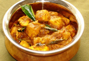 - Heat oil in a vessel and fry the onions till golden, then add curry leaves and the ground paste and sauté for some time.