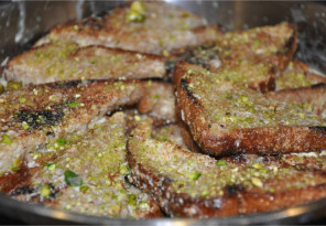 - Pour over the bread slices.