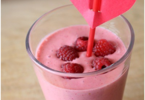 - Mix yogurt, jam, honey, food coloring and banana in blender.
